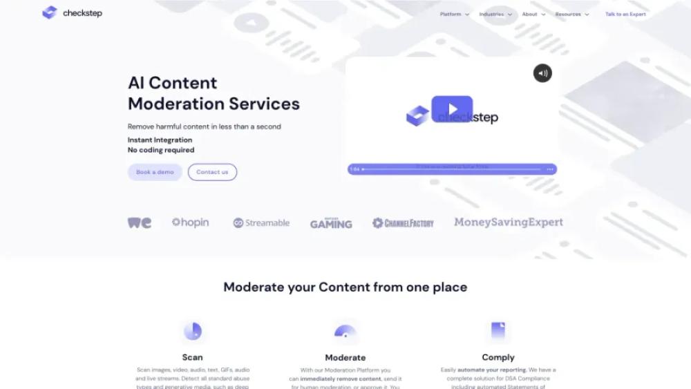 Checkstep is a content moderation platform that helps businesses ensure their online communities are safe and compliant by using AI-driven technology to detect and manage harmful content.